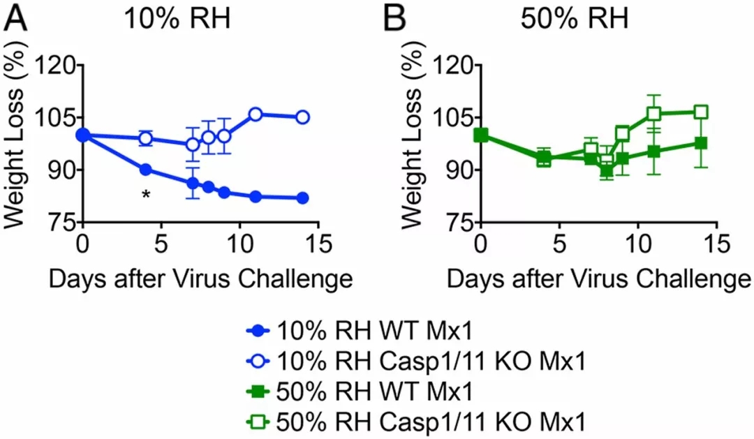 低濕度通過caspase-1/11激活增強(qiáng)流感疾病癥狀