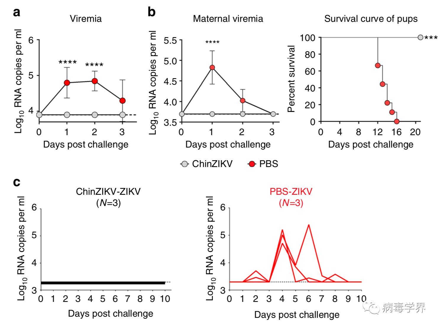 圖2. 寨卡疫苗ChinZIKV在小鼠和恒河猴模型中的免疫保護(hù)效果