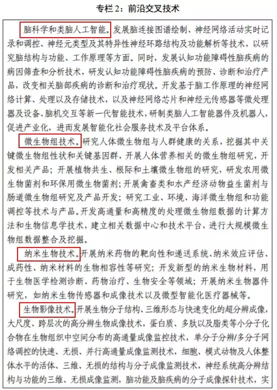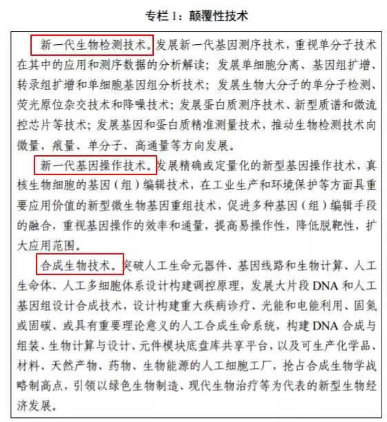 該《規(guī)劃》明確了四大重點(diǎn)任務(wù),包括:1)突破若干前沿關(guān)鍵技術(shù)、2)支撐重點(diǎn)領(lǐng)域發(fā)展、3)推進(jìn)創(chuàng)新平臺(tái)建設(shè)、4)推動(dòng)生物技術(shù)產(chǎn)業(yè)發(fā)展。