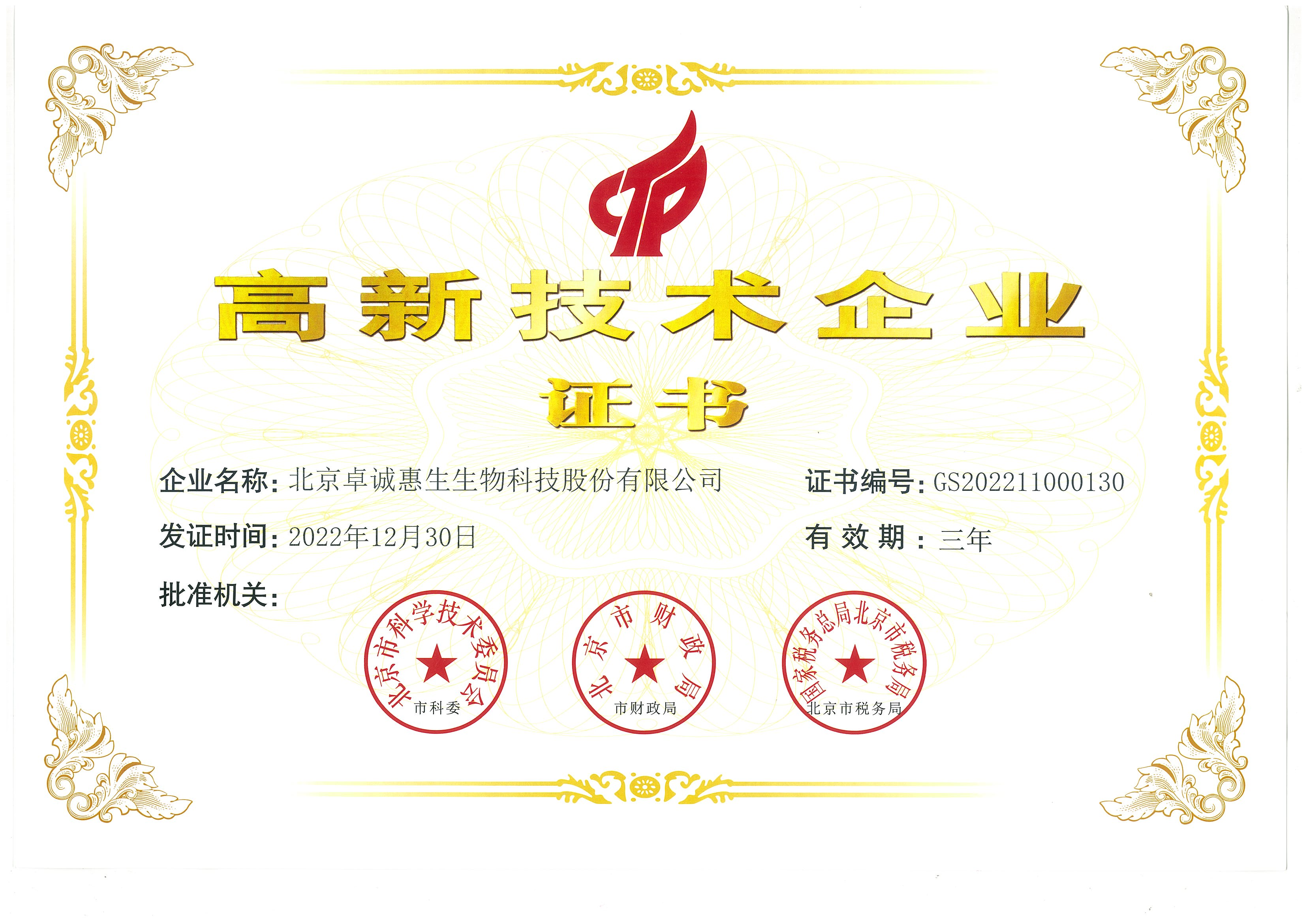 - 中關(guān)村高新技術(shù)企業(yè)證書