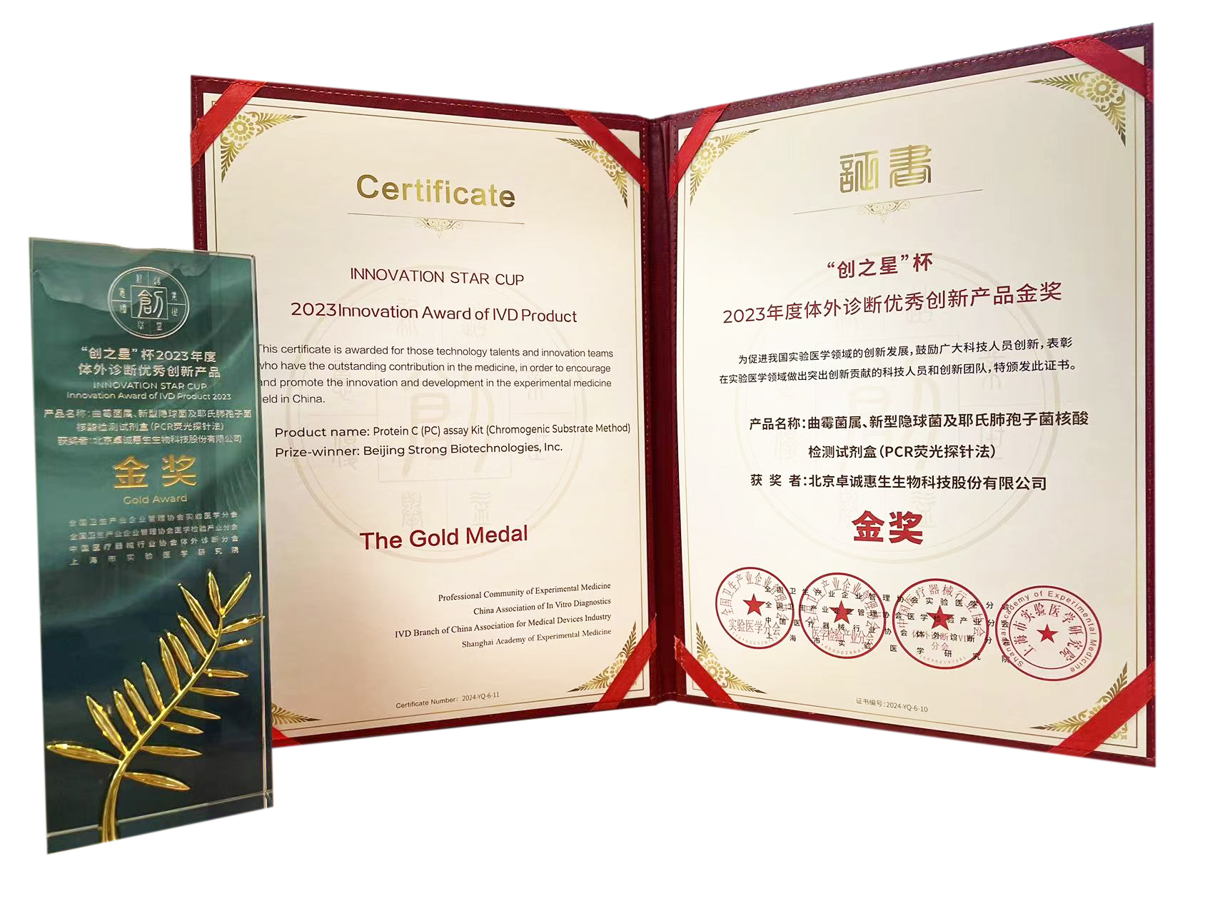 2024年3月15日,北京卓誠惠生生物科技股份有限公司獨家產品“曲霉菌屬、新型隱球菌及耶氏肺孢子菌核酸檢測試劑盒(PCR熒光探針法)”斬獲“創(chuàng)之星”杯??2023年度體外診斷優(yōu)秀創(chuàng)新產品金獎!該獎由全國衛(wèi)生產業(yè)企業(yè)管理協(xié)會實驗醫(yī)學分會、全國衛(wèi)生產業(yè)企業(yè)管理協(xié)會醫(yī)學檢驗產業(yè)分會、中國醫(yī)療器械行業(yè)協(xié)會體外診斷分會、上海市實驗醫(yī)學研究院等聯(lián)合頒發(fā),本次當選說明了卓誠惠生的“真菌三項”產品實力突出,廣泛獲